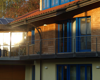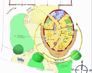 Neubau eines energieautarken Wohngebäudes in Lehmbauweise mit Büro- und Gewerberäumen in Ortsrandlage nach FengShui und Geomantie.