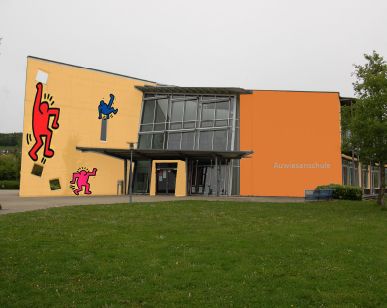 Im ersten Bauabschnitt wurde im Rahmen notwendiger Sanierungsmaßnahmen die Fassade der Schule neu gestaltet. Die durch modische Architekturelemente strikt getrennten Bereiche Verwaltung, Halle und Klassenzimmer werden im Außenbereich durch die neue Farbgebung miteinander sichtbar und spürbar verbunden. Die freundlichen Farbtöne von hellem ocker bis orange werden dem Alter und den Berfürfnissen der Grundschulkinder gerecht. Sie wirken erdend und gleichzeitig einladend, kommunikationsfördend und vitalisierend auf Schüler, Lehrer und Betrachter.