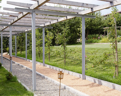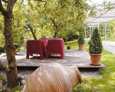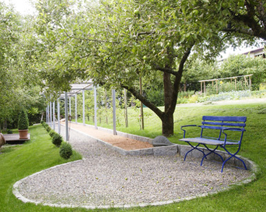 Dank der subtilen Einfügung in den vorhandenen Obstbaumbestand konnten alle Bäume erhalten werden.