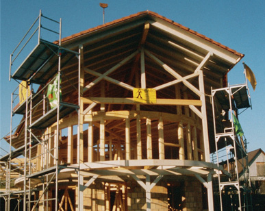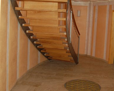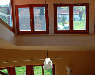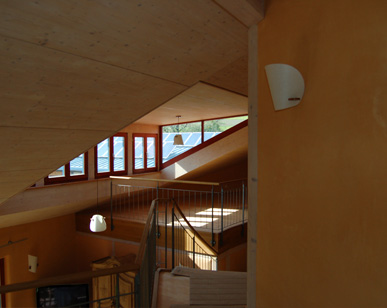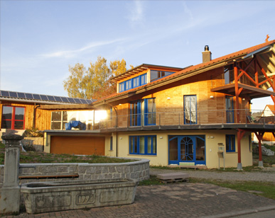 Das Wohnhaus mit Büroräumen wurde als Holzständerhaus mit rein natürlichen Baumaterialien nach FengShui-Prinzipien und baubiologischen Prinzipien erstellt. Als Dämmmaterial wurden Holzweichfaserplatten und Hanfdämmmatten eingesetzt.