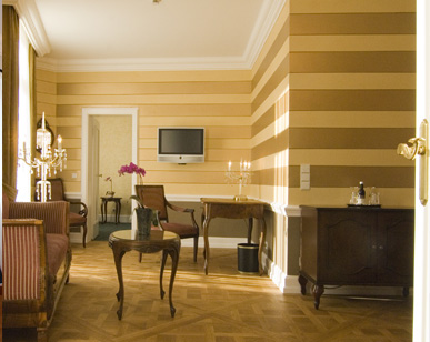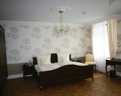 Haustechnik, Brandschutz und Wellnessbereich wurden komplett neu erstellt. Hotelzimmer und Gastronomie umfassend saniert bzw. umgebaut. Umsetzung des „Jugendstil-Themas“ in Farbe, Form, Material und Licht. Restaurierung der vorhandenen alten Möblierung.