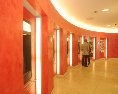 Umbau und Neugestaltung der Kundenhalle mit dem Ziel, eine neue Wohlfühlatmosphäre zu gestalten, die Kommunikation zwischen Bank und Kunden zu verbessern und eine neue Corporate Architecture, richtungsweisend für alle Filialen, einzuführen. Als weitere Vorgabe galt es, die akustische Situation zu verbessern.