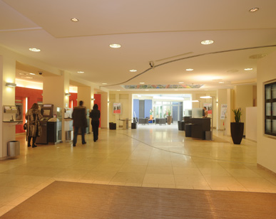 Kunstobjekte, Brunnen und ein multifunktionaler Loungebereich sind in die neue Corporate Architektur integriert.